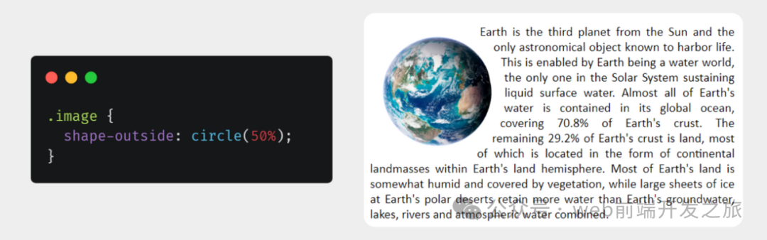 shape-outside 属性定义文本如何环绕 HTML 元素。此属性对于浮动元素特别有用。定义的形状决定了文本围绕该元素的流向,使文本能够平滑地环绕非矩形形状。