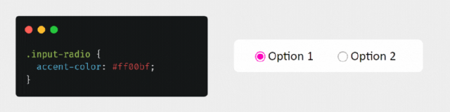 accent-color 属性用于指定元素中某些表单控件(如单选按钮、复选框等)的强调色。此属性将覆盖浏览器的默认主题颜色,并将其替换为开发人员指定的颜色。