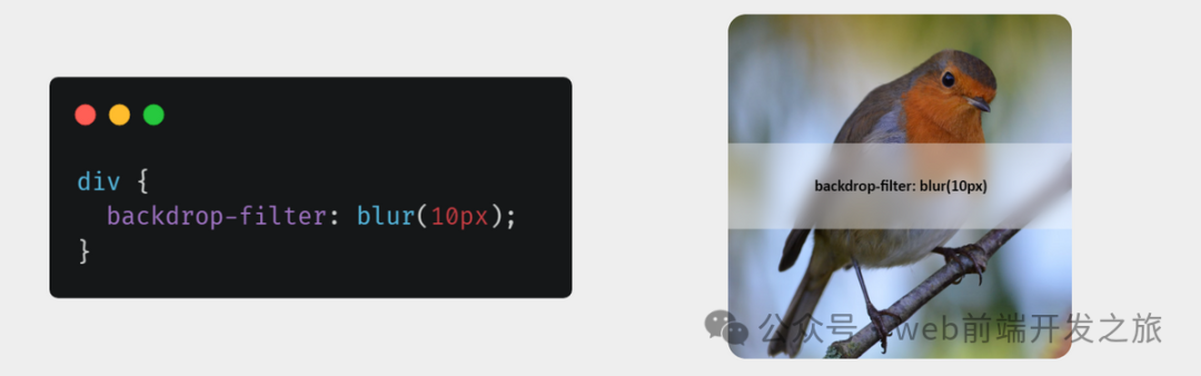 使用 backdrop-filter CSS 属性,可以将各种效果应用于元素后面的内容。它通常用于模糊背景、更改其颜色或添加阴影,为创建现代网页设计提供了强大的工具,尤其是对于透明或半透明背景。