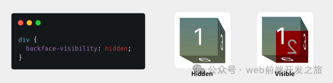 backface-visibility CSS 属性确定元素在 3D 空间中旋转时是否可见。如果背面不可见,则浏览器不会呈现它,这可以提高性能。