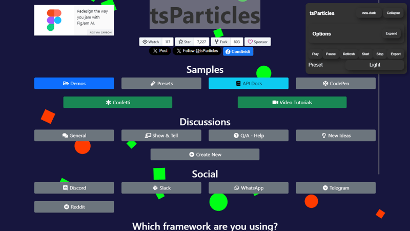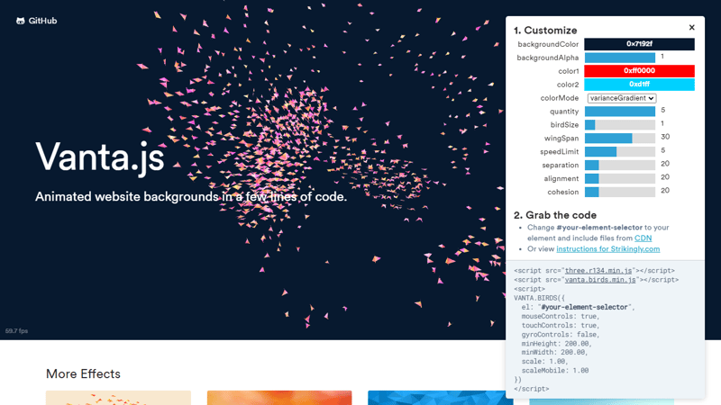 轻松创建高度可定制的粒子、彩带和烟花动画,并将它们用作网站的动画背景。