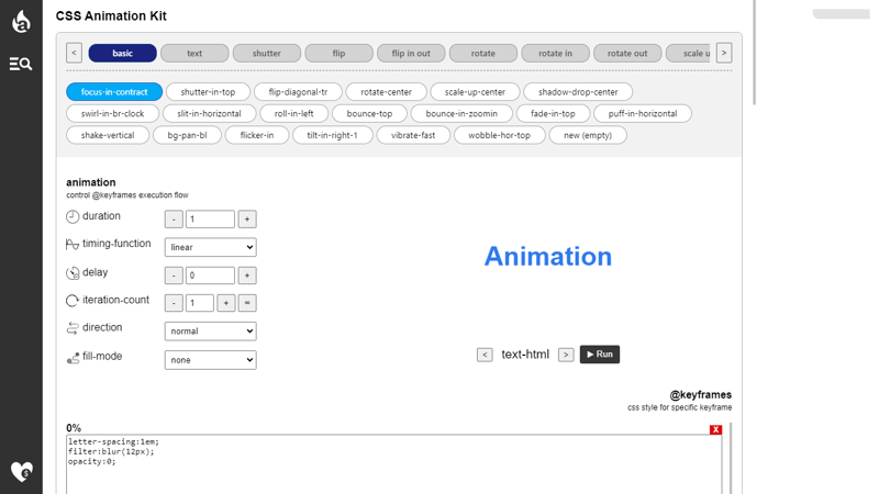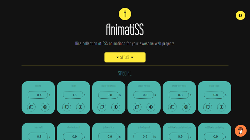 AnimatiSS是一个工具,可以预览自定义CSS动画并通过简单的点击获取其代码,以粘贴到你自己的网页项目中。